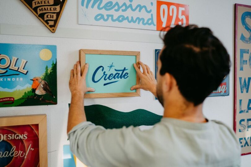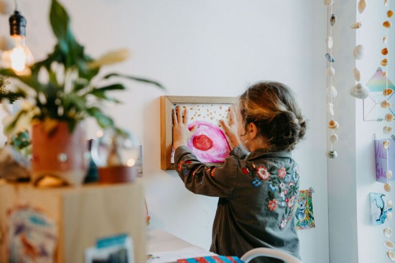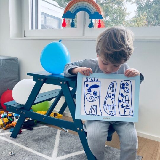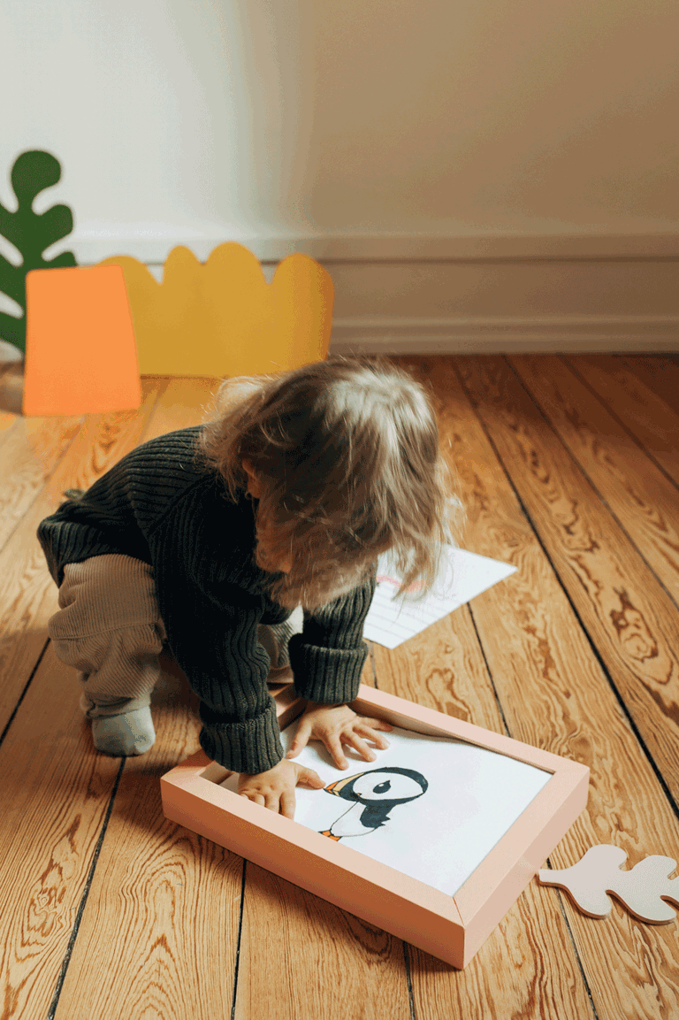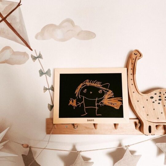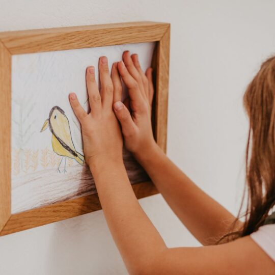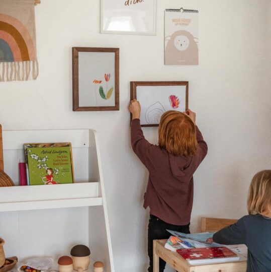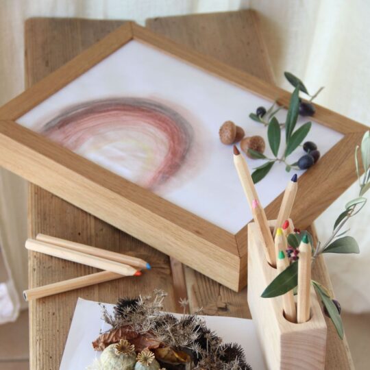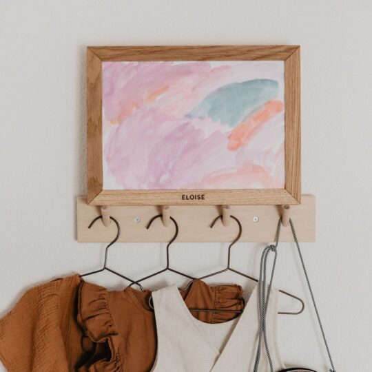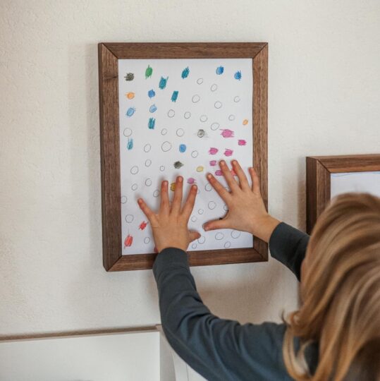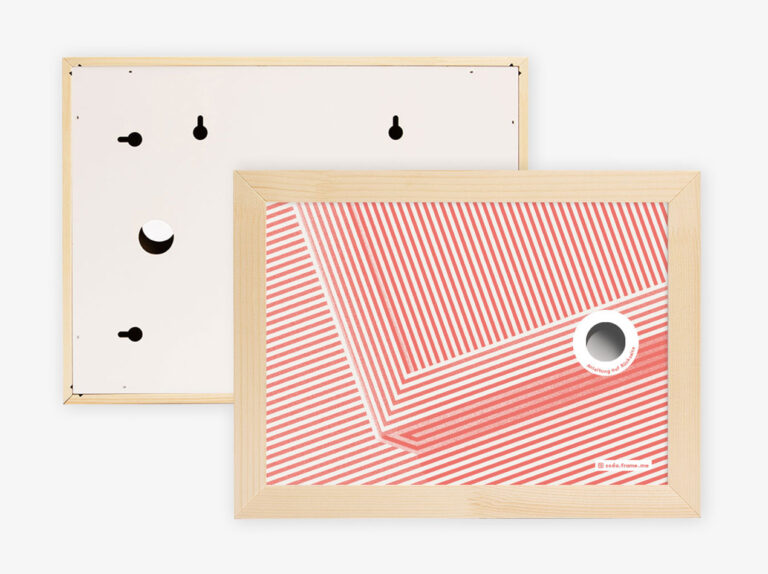 Im Holzrahmen «FrameMe» können über 100 Kunstwerke durch kinderleichtes Hineindrücken versorgt und zugleich schön ausgestellt werden.